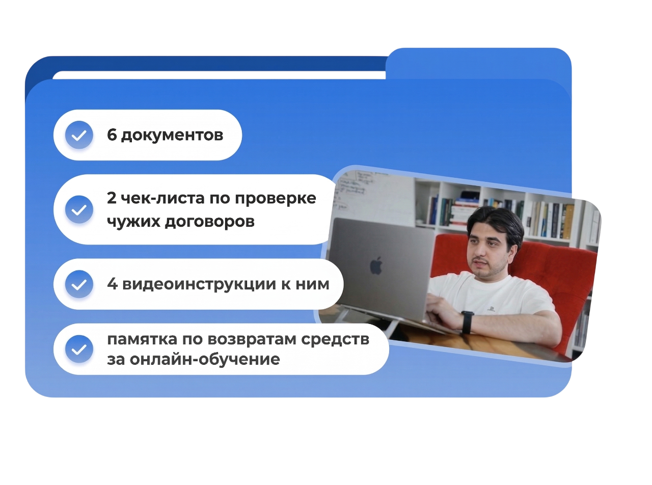 Выберите подходящий пакет: полный пакет или пакет с промптами искусственного интеллекта для генерации договоров. Или мы адаптируем договоры за вас.